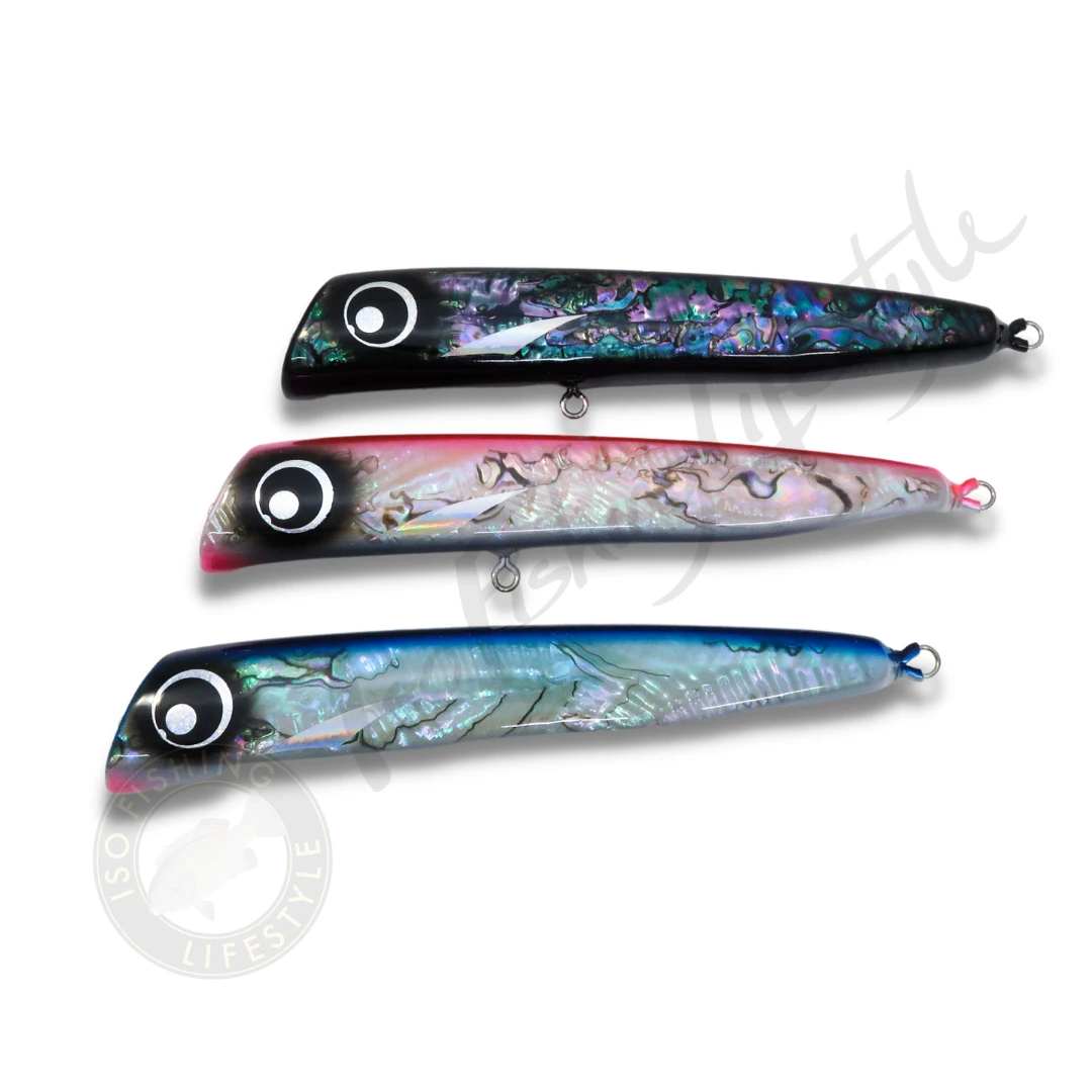The limited edition Funky Soda 200F Swimming Popper “Swimming popper” abalone version combines the advantages of a diving pencil and a popper. Finally completed after three years of development! Moderate sound & splash! Intense flushing due to tight S-shaped action & rolling in the water! An irregular slide to show at the end of the action! Strongly entices the fish to hit the lure aggressively! The Funky Soda 200 Swimming Popper will help you meet the fish of a lifetime.