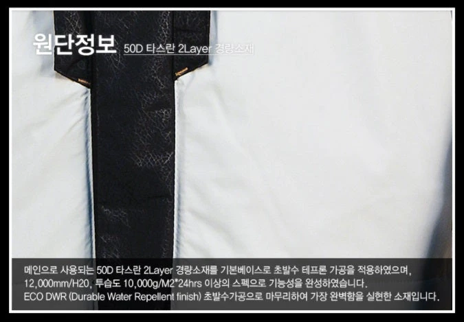 2 Layer ECO DWR (Durable Water Repellent finish)