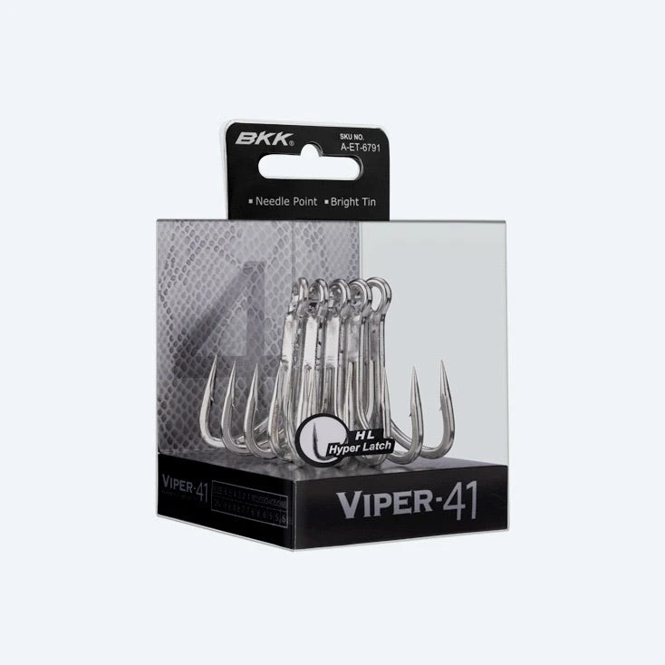The BKK Viper is a 4X treble specifically designed to withstand the power of strong fish while not affecting lure action. The extra-long, super-sharp needle point optimizes both penetration and holding power. This series comes in a wide size range including odd sizes to perfectly balance every type of lures, thereby improving their swimming action.