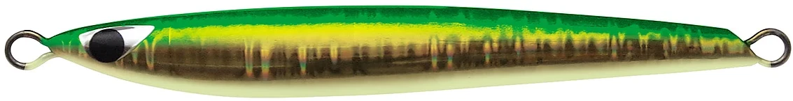 - Horizontal free fall wobbling action on drop that imitates a fleeing bait fish