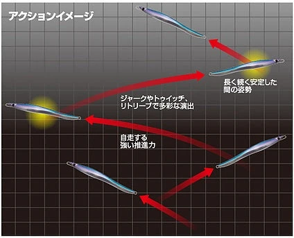 High performance metal jigs that support a variety of operating environments, from vertical to shallow cast & jerk, regardless of input and load direction. Its unique form provides excellent startability and responds quickly to the angler’s strategy. Automatic action that does not require difficult operation, from continuous operation of swimming system using spinning tackle to basic one pitch. The stable posture created during the operation has a very long holding time, and the connection to the action is smooth with excellent rise to the next action. Outstanding balance design that floats against gravity.