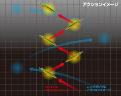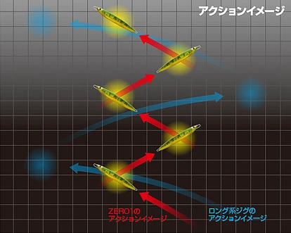 - Erratic horizontal zigzag action imitating fleeing baitfish on fall