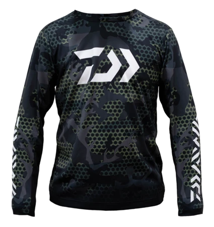 Just like the hooded version, the new Daiwa Hex Jersey is a lightweight sublimation dyed fishing jersey with the distinctive Daiwa Hex Camo pattern. A favourite for those anglers who wish to wear this combined with a face mask or neck gaiter, the non hooded version features a traditional round cut collar which doesnât leave too much exposed. The backside of the jersey features a breathable lightweight mesh, ensuring you stay comfortable throughout the day.Â