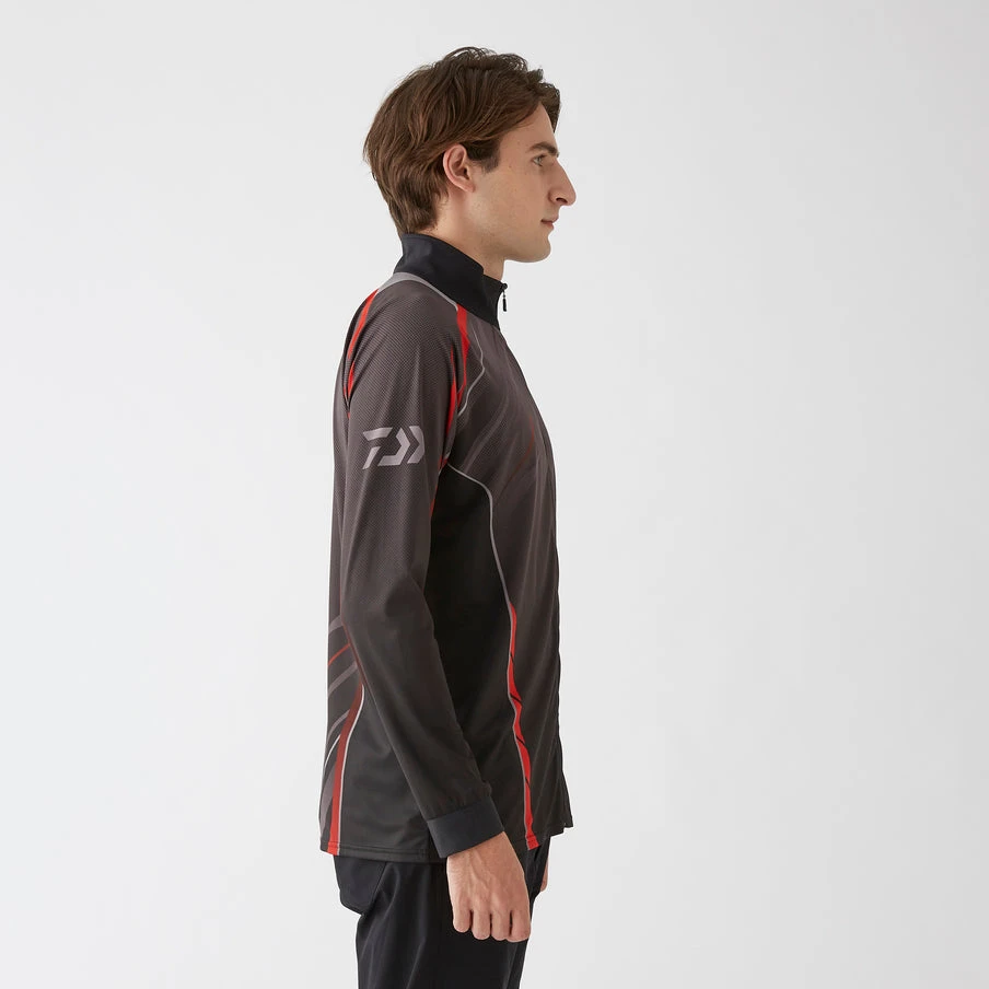 A comfortable material that combines quick-drying water absorption, UV protection, and stretchability, making it difficult for the wear to adhere to the skin even when a large amount of sweat is generated, and keeping the dry feeling. High neck design that reduces sunburn around the neck. The cuff stretch mesh switch enhances the fit on the wrist and is useful when rolling sleeves. Full zip open type that is easy to put on and take off even when wet.