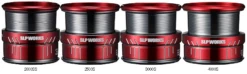 | Size | Compatible models | Weight (g) | Maximum drag force (kg) | Standard winding amount nylon (lb-m) | Standard winding amount PE (No.-m) |