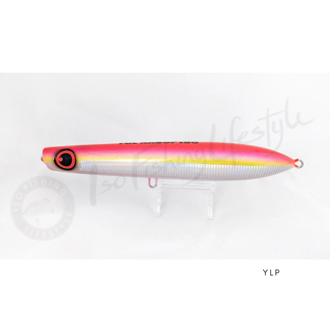 The new Nasup lures from FCL are a classic skipping popper that can be fished at high speed or with a chopping walk the dog style retrieve. Weighted toward the tail the Nasup is an exceptional casting lure making it ideal for fishing areas when you cant get too close to structure you are fishing. The Nasup is extremely effective in rough or calm conditions as it will skate across the top of choppy or calm water. The Nasup 195 is perfect for Kingfish, GTs, Tuna, Mackerel, Red Bass and Coral Trout and features the quality of finish that we have come to expect from FCL Labo!!