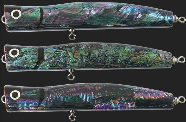 KEIKO OCEAN POPPER provides an excellent castability due to its body shape and is a very effective lure for casting game targeting various big fishes including Kingfish and Tuna. The popper has a strong body since a wire is pierced through its body. The popper is made of a natural high-floating wood with less unequalness of specific gravity, and is handmade by Hideyuki Tanaka, a master craftsman of handmade lure.