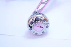 The main plate and aluminum knob color is sakura, skirt and center nut is titanium gold to create an aesthetically unique double handle. Engraved by laser precision, sakura’s are present on the end of the titanium silver EF30 handle knobs with a sakura pink end cap.