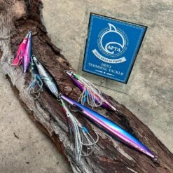 Built with custom design hooks professionally tied onto custom OL Tako baits. The Tako baits present an appealing appearance when working the lures and on the drop with a skirt squirt attached to the assist which are all luminous.