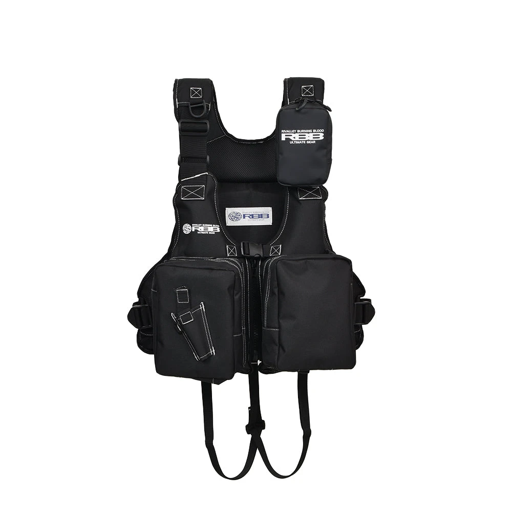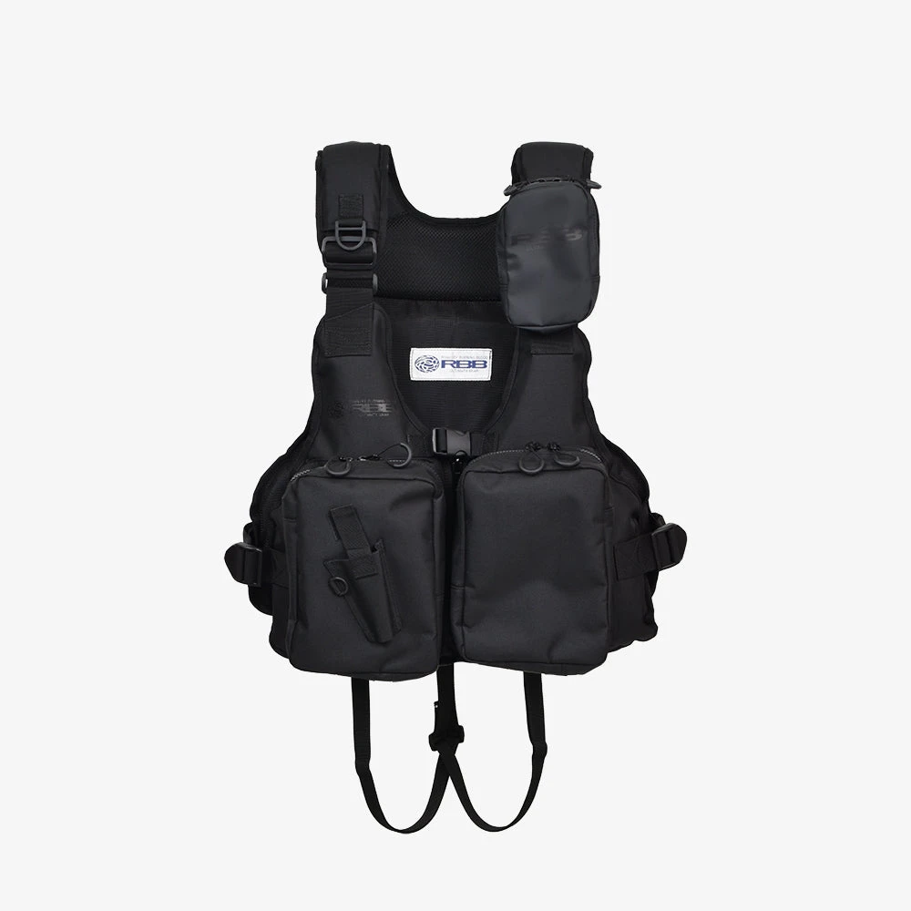 A simple lure vest designed by RBB with the essentials. A minimalist design, the lure vest is equipped with the two storage compartments on the front of the vest, one on each side with plier holder on the right pocket.