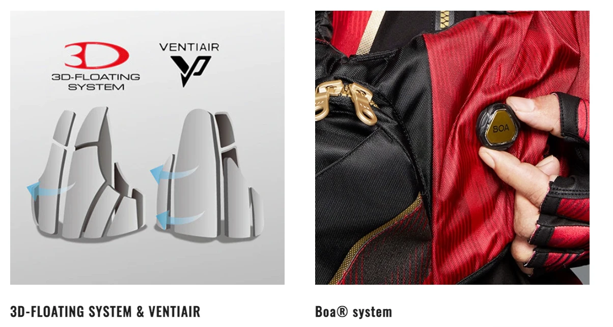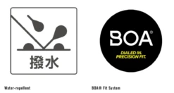 Uses a Boa ® system that provides a high fit and one-action attachment / detachment . In addition, the subdivided buoyancy material allows for a flexible fit.