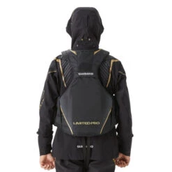 The floating vest with a flagship presence matches Shimano’s rocky shore fishing tackle.