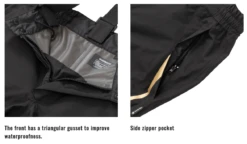 - Triangle gusset to improve waterproofing on the pants