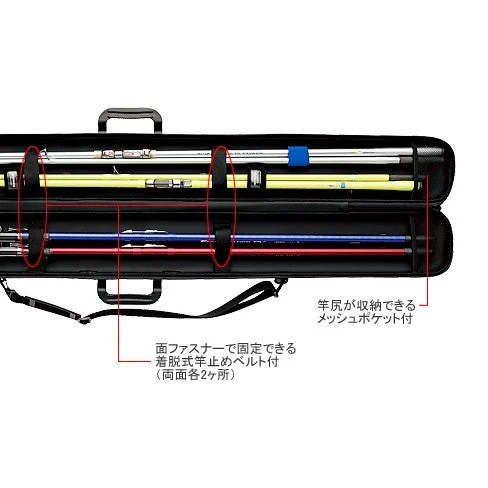 - Can hold up to 3 ISO rods, an ISO fishing landing net pole and a burley scoop
