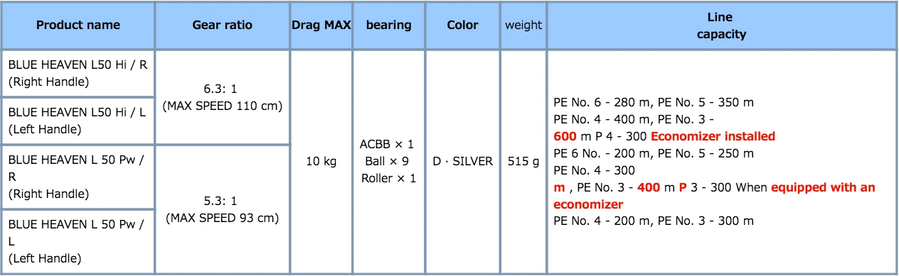 You can hold 300m of PE#4 and 300m of #3exactly, and when you go on an expedition, simply remove the economizer and you can hold an additional 100m of #4 or an additional 300m of #3 PE line, which will allow you to fish a little bit harder than with the economizer attached.