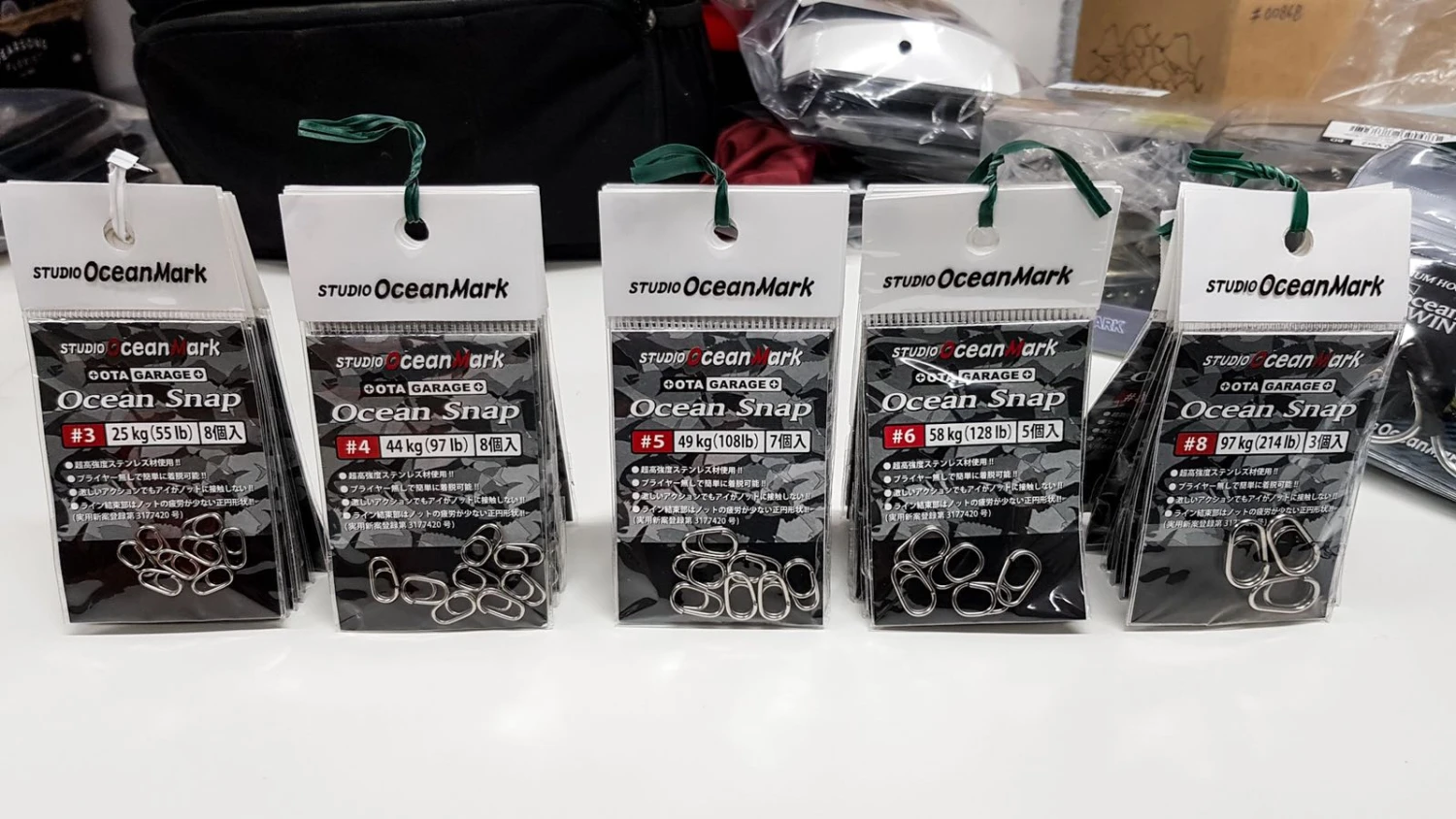 Studio Ocean Mark Ocean Snap BB (Ball Bearing) features a swivel snap dedicated to medium / heavy spinning . Made of stainless steel SUS631 , it allows a quick and easy installation of stickbait , jigs and poppers . The relationship between size and strength is really great ; in fact it allows to fight of great weight without any problems and especially without changing the swimming of the artificial view the very small size. It has been very difficult to get such a small accessory and such high values ​​, but Studio Ocean Mark was able to secure a safe and practical carabiner.